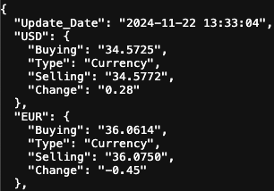 Wenn wir in eine Json Datei deserialization machen möchten, achten wir darauf, die Felden die Währungsdaten wie buying, selling und Metadaten wie Update_Date getrennt eine jede einzelne Klasse zu werden.